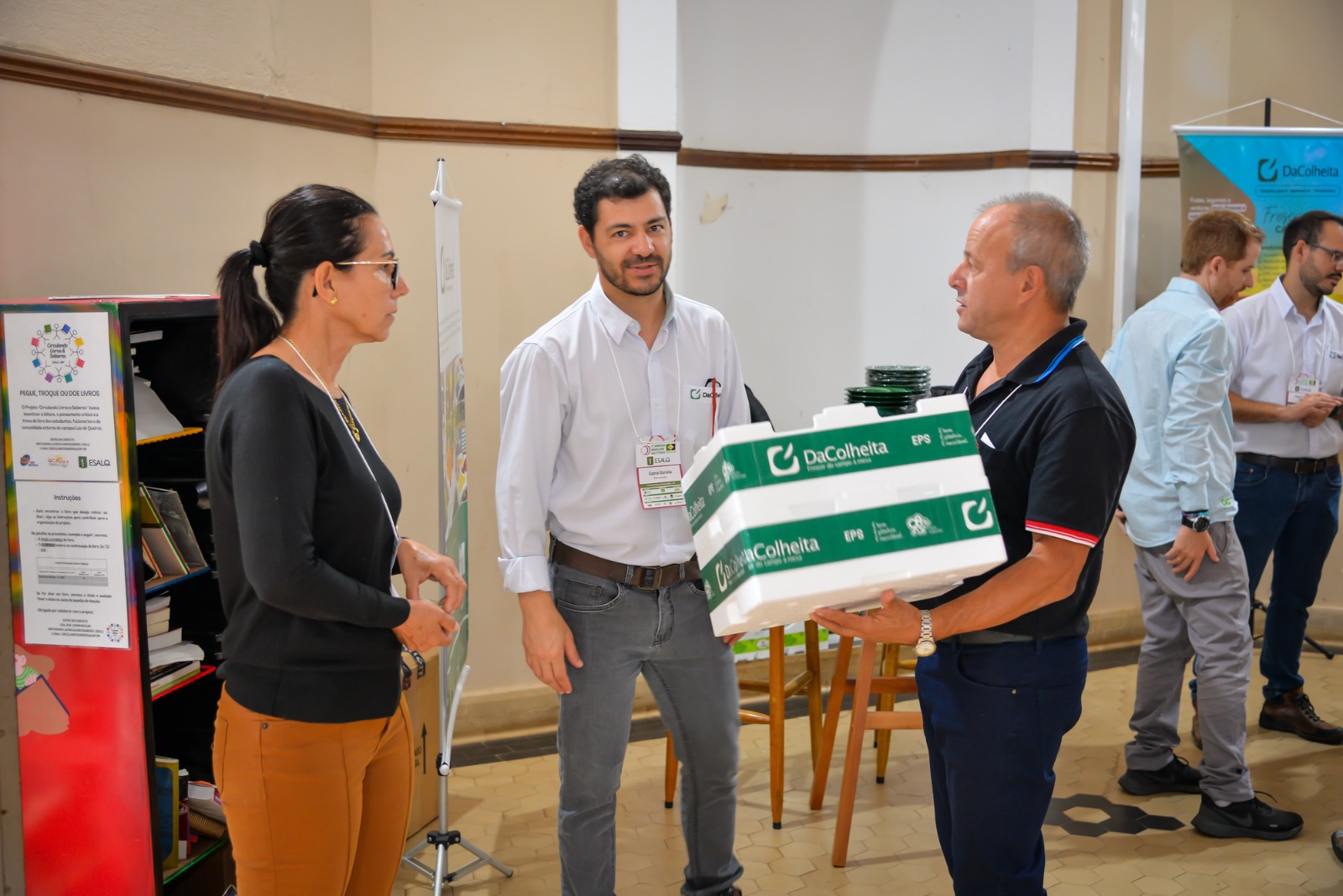 No hall do prédio na sede da Escola Superior de Agricultura “Luiz de Queiroz” – USP (ESALQ), em Piracicaba, os participantes do simpósio foram recebidos por uma feira de exposição com empresas do setor, que aproveitaram para apresentar as soluções desenvolvidas que podem ser utilizadas pelo produtor de pitaya.