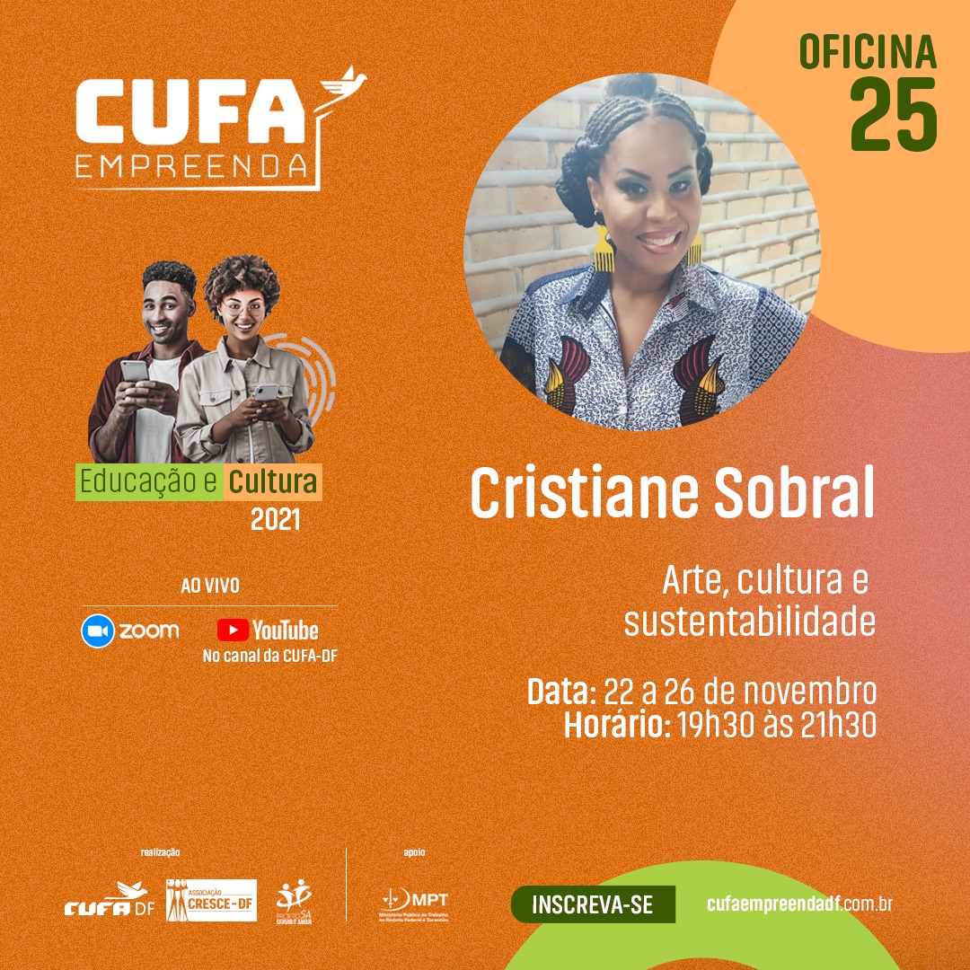 O Cufa Empreenda rompe as barreiras e obtém um respeitável alcance em âmbito local, ao oferecer capacitação gratuita para a favela empreendedora de todas as RAs do Distrito Federal. Entre essas diversas atividades, está a oficina de Arte, cultura e sustentabilidade, ministrada por Cris Sobral, que explica detalhes de sua proposta: “o objetivo do curso é oferecer sustentabilidade para quem deseja trabalhar com arte e cultura. Com isso, pretendo mostrar, a partir de minha experiência e minha trajetória, caminhos para profissionalização, acessibilidade cultural e organização comunitária, no que se refere ao desenvolvimento de artistas, agentes culturais e demais pessoas interessadas nesses campos”.
