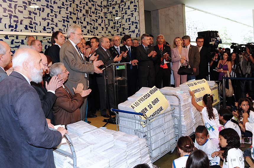 Movimento de Combate à Corrupção Eleitoral (MCCE) promoveu a campanha Ficha Limpa. Com a mobilização foi possível coletar a quantidade necessária de assinaturas para que o projeto fosse apresentado na Câmara dos Deputados.
